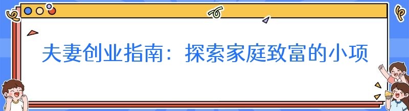 在当今社会,越来越多的夫妻选择携手创业,共同追求家庭的财富和幸福。夫妻创业不仅可以增进彼此之间的感情,还能够充分发挥双方的优势,实现共同的目标。那么,有哪些适合夫妻创业的家庭致富小项目呢?下面就为大家介绍一些。