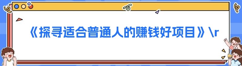 《探寻适合普通人的赚钱好项目》