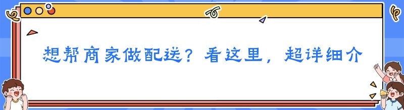 想帮商家做配送?看这里,超详细介绍!