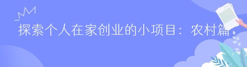 探索个人在家创业的小项目:农村篇