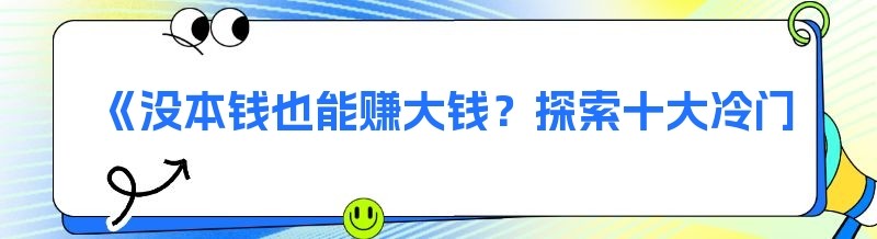在当今社会,许多人都渴望快速赚钱,然而却苦于没有足够的本钱。难道没有本钱就无法实现财富梦想吗?其实不然,今天就为大家介绍十大冷门暴利生意,让你在没有大量资金的情况下,也能开启赚钱之路。