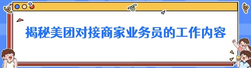 在当今竞争激烈的外卖市场中,美团作为行业的领军者,其对接商家的业务员扮演着至关重要的角色。他们就像是连接美团平台与商家的桥梁,通过一系列细致而繁杂的工作,确保商家能够顺利入驻美团平台,并在平台上获得良好的发展。那么,美团对接商家的业务员具体都做些什么呢?接下来,就让我们一起揭开他们工作的神秘面纱。