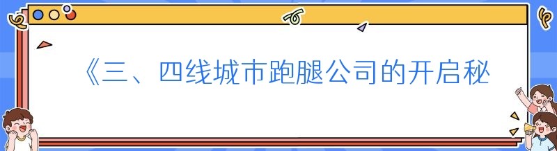 《三、四线城市跑腿公司的开启秘籍》
