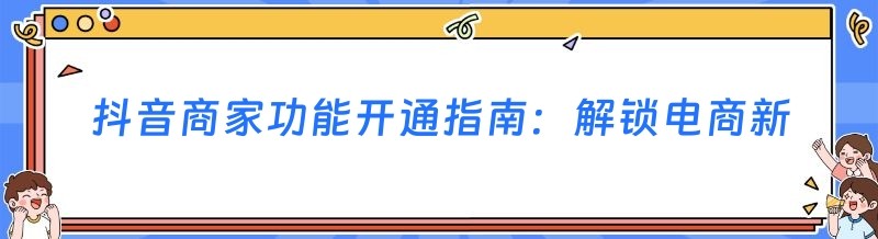 抖音商家功能开通指南:解锁电商新机遇