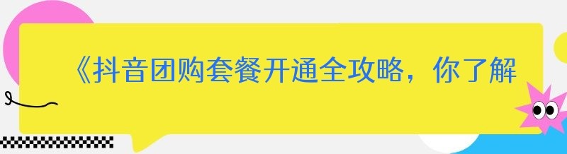 《抖音团购套餐开通全攻略,你了解多少?》