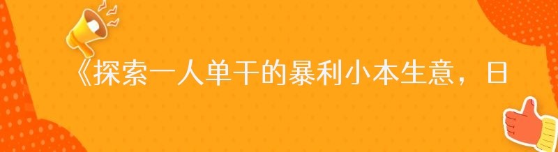 《探索一人单干的暴利小本生意,日赚二三百不是梦》