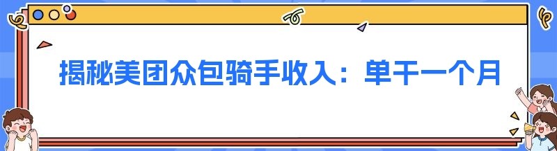 编辑 揭秘美团众包骑手收入:单干一个月究竟能赚多少?