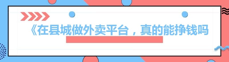《在县城做外卖平台,真的能挣钱吗?》