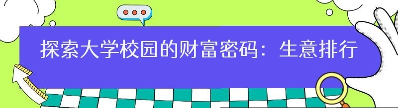 在大学校园这个充满活力与消费潜力的独特市场中,蕴含着无数的商机等待着有眼光的创业者去发掘。今天,就让我们一同深入探讨大学校园内的生意排行以及那些颇具潜力的好商机。