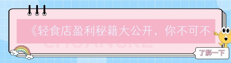 《轻食店盈利秘籍大公开,你不可不知的财富密码!》