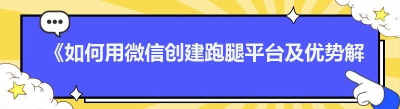 《如何用微信创建跑腿平台及优势解析》