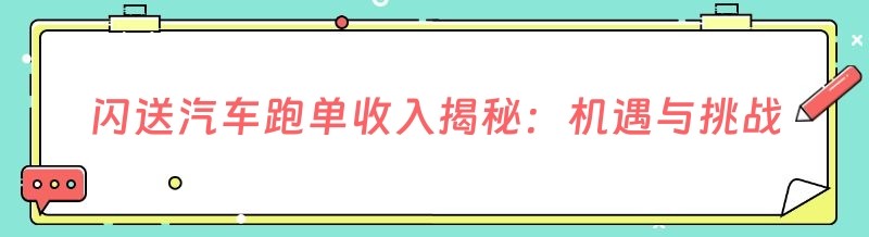 闪送汽车跑单收入揭秘:机遇与挑战并存