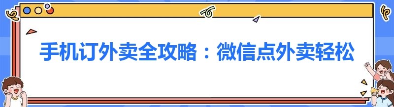 手机订外卖全攻略:微信点外卖轻松上手