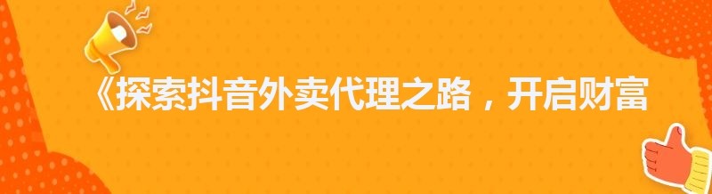 在当今数字化时代,外卖行业的发展如日中天,而抖音作为一款拥有庞大用户群体的社交平台,也开始涉足外卖领域,为广大创业者带来了新的机遇。那么,究竟怎样才能代理抖音外卖呢?下面就为大家详细介绍一些干货。