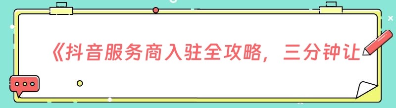《抖音服务商入驻全攻略,三分钟让你秒懂!》