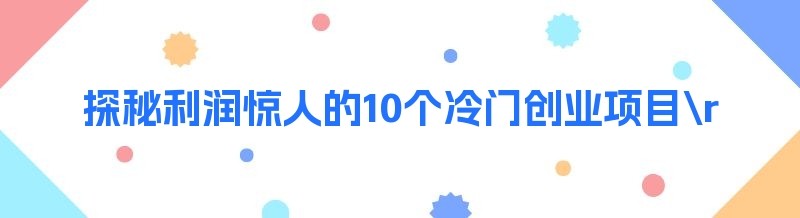 在创业的广阔天地中,许多人都在追逐热门项目,却往往忽略了那些隐藏在角落里的冷门创业项目。这些项目虽然不被大众所熟知,但却有着令人咋舌的利润空间。今天,就让我们一起揭开这些冷门创业项目的神秘面纱,看看能赚钱的冷门生意究竟有哪些。
