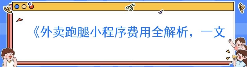 在当今数字化时代,外卖跑腿小程序已成为人们生活中不可或缺的一部分。无论是餐饮外卖、快递代取还是其他生活服务,小程序都为用户提供了便捷的下单和查询体验。然而,对于许多想要开发或使用外卖跑腿小程序的人来说,费用是一个关键问题。那么,外卖跑腿小程序的费用到底是多少呢?本文将为您详细解析。