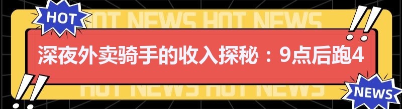 在城市的夜晚,当大多数人都已进入梦乡,却有一群人依然穿梭在街头巷尾,他们就是外卖骑手。很多人好奇,外卖骑手在晚上9点后跑4个小时,究竟能挣多少钱呢?今天,就让我们一起来揭开这个谜底。