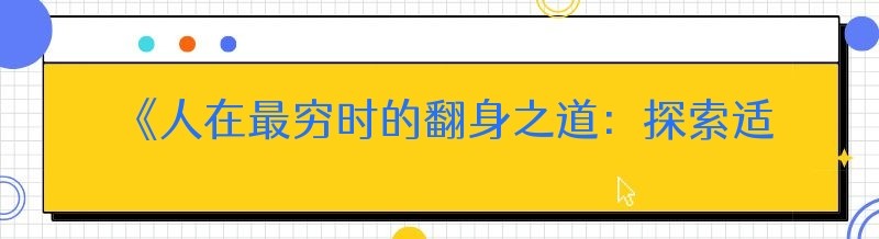 《人在最穷时的翻身之道:探索适合穷人的10个行业》