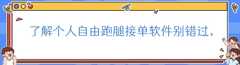 了解个人自由跑腿接单软件别错过,关于个人自由跑腿接单软件的干货在这里!