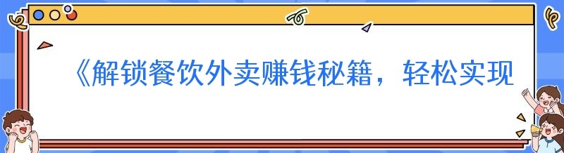 《解锁餐饮外卖赚钱秘籍,轻松实现财富增长》