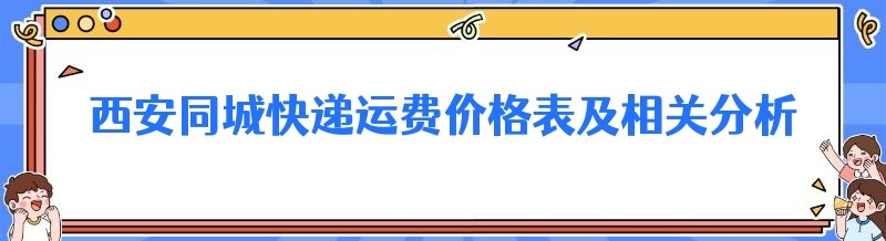 在当今社会,同城快递已经成为人们生活中不可或缺的一部分。无论是寄送文件、礼物还是其他物品,同城快递都能提供便捷、快速的服务。然而,对于很多人来说,同城快递的运费价格却是一个比较模糊的概念。不同的快递公司、不同的服务类型以及不同的重量和体积等因素都会影响运费价格。那么,西安的一般快递同城运费是多少钱呢?本文将为您详细介绍西安同城快递运费价格表,并对相关因素进行分析。