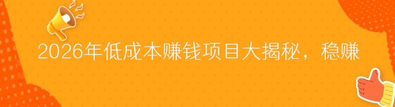 2026年低成本赚钱项目大揭秘,稳赚不赔不是梦!