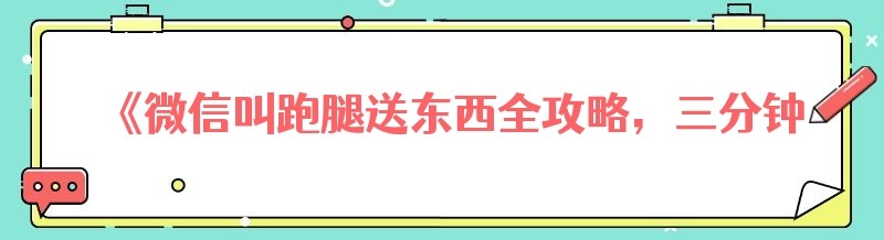 《微信叫跑腿送东西全攻略,三分钟让你轻松掌握!》