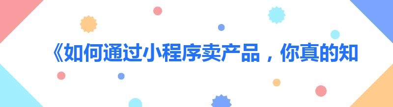 《如何通过小程序卖产品,你真的知道这些吗?》