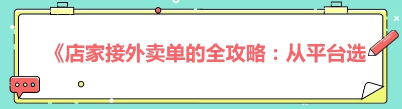 《店家接外卖单的全攻略:从平台选择到系统助力》
