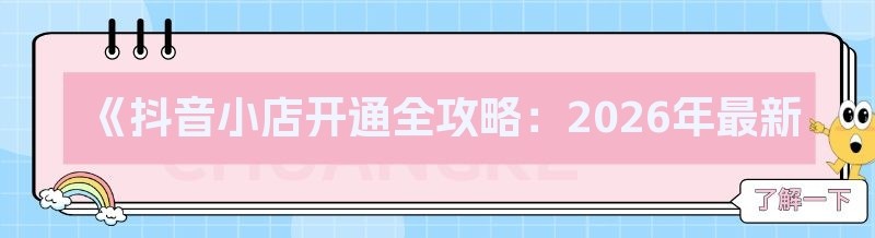 在当今数字化时代,抖音作为一款极具影响力的短视频平台,不仅为用户带来了无尽的娱乐和创意,也为个人和商家提供了广阔的商业机会。其中,抖音小店成为了众多创业者和个体经营者的热门选择。那么,2026年如何开通抖音小店呢?个人抖音开店又需要哪些资质呢?本文将为您详细介绍抖音小店开通的全流程以及个人开店所需的资质要求。