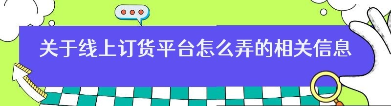 关于线上订货平台怎么弄的相关信息大全!这样做线上订货平台怎么弄没问题!