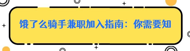 饿了么骑手兼职加入指南:你需要知道的那些事儿