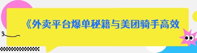 《外卖平台爆单秘籍与美团骑手高效跑单之道》