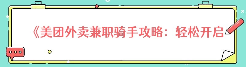《美团外卖兼职骑手攻略:轻松开启兼职之旅》