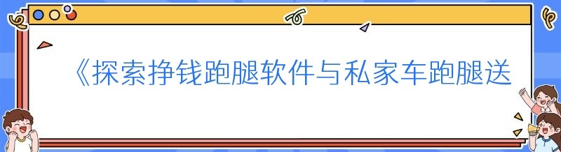 《探索挣钱跑腿软件与私家车跑腿送货平台》