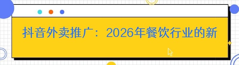 抖音外卖推广:2026年餐饮行业的新机遇