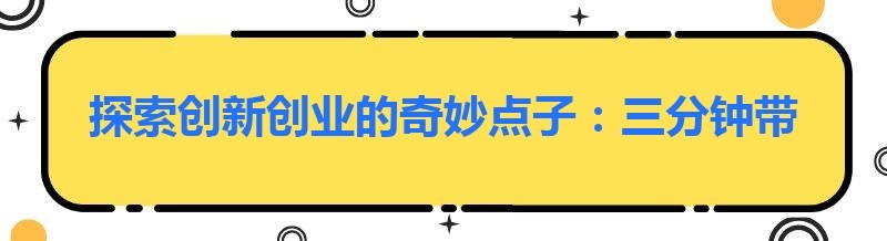 探索创新创业的奇妙点子:三分钟带你开启灵感之旅