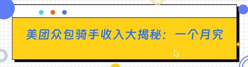 美团众包骑手收入大揭秘:一个月究竟能赚多少钱?