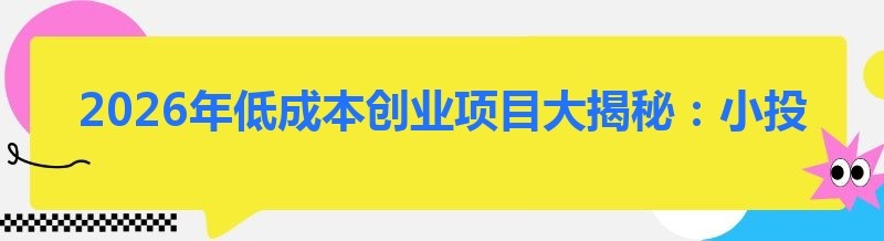 2026年低成本创业项目大揭秘:小投资也能成就大梦想