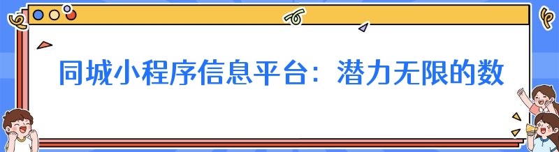 同城小程序信息平台:潜力无限的数字化新机遇