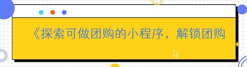 《探索可做团购的小程序,解锁团购新体验》