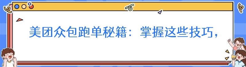 美团众包跑单秘籍:掌握这些技巧,轻松提升收入!