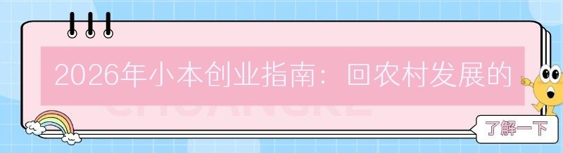 在当今社会,创业成为了许多人追求梦想和实现财富自由的途径。尤其是对于小本创业者来说,寻找一个具有潜力和发展空间的项目至关重要。而农村,这片广阔的土地,正逐渐展现出其独特的优势和无限的商机。那么,2026年小本创业做什么好呢?回农村又有哪些优势发展和创业机会呢?让我们一起来探讨一下。