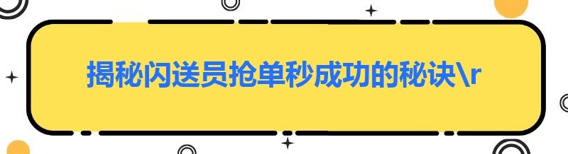 在当今的物流配送领域,闪送员作为一种快速、高效的配送服务提供者,越来越受到人们的关注。对于许多闪送员来说,能够秒抢订单是他们提高收入和工作效率的关键。那么,闪送员是如何做到抢单秒成功的呢?下面就为大家揭秘一些闪送员抢单秒成功的秘诀。