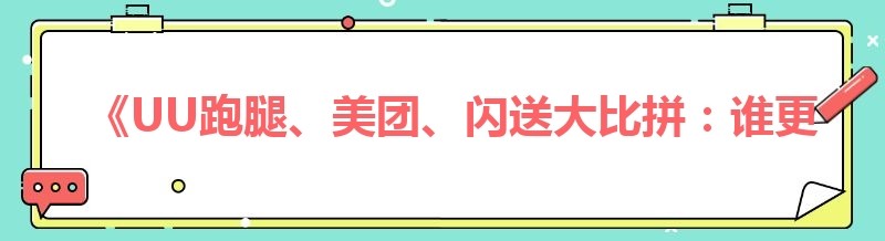 《UU跑腿、美团、闪送大比拼:谁更挣钱?谁更可靠?》