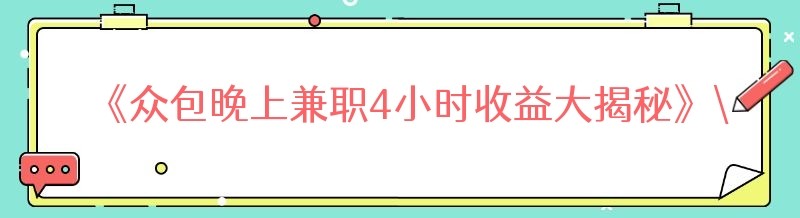 在当今社会,越来越多的人渴望在业余时间通过兼职来增加收入。众包兼职因其灵活性和多样性,成为了许多人的选择。尤其是晚上兼职4小时的众包工作,更是吸引了不少人的关注。那么,众包晚上兼职4小时到底能赚多少呢?这是很多人心中的疑问。