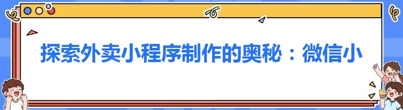 探索外卖小程序制作的奥秘:微信小程序外卖的实现之路
