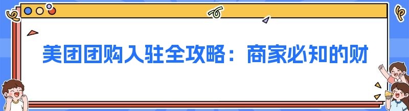 美团团购入驻全攻略:商家必知的财富密码