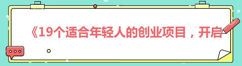 编辑 《19个适合年轻人的创业项目,开启梦想之旅》
